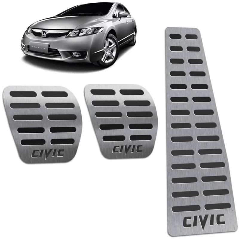 O Kit Pedaleira e Descanso de Pé para Civic 2006 a 2011 traz um visual mais esportivo e moderno para o interior do carro. Fabricados em aço inox escovado, os acessórios oferecem mais durabilidade, aderência e conforto na condução. A instalação é simples, feita em poucos minutos, sem furar os pedais originais.